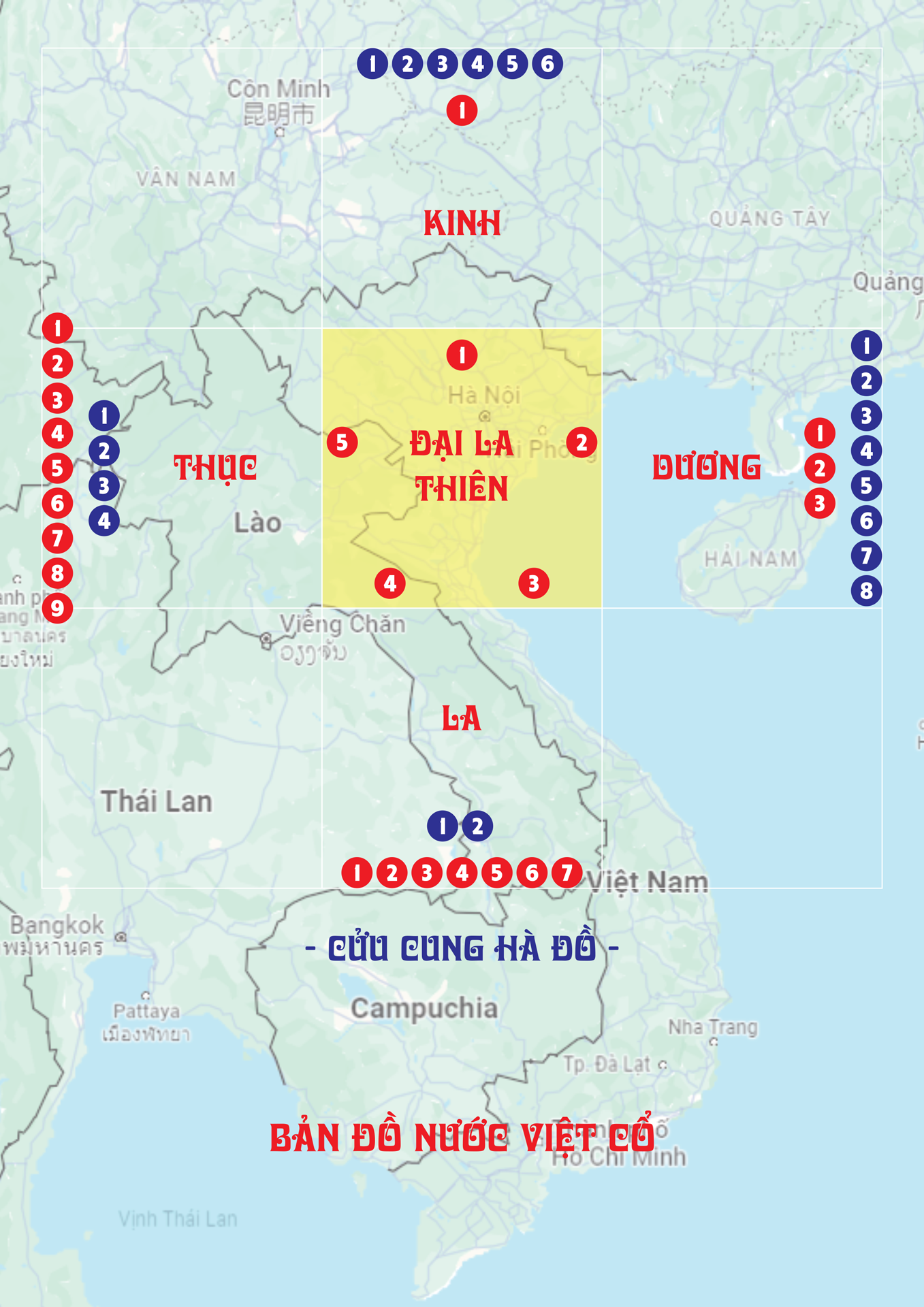 Vua chia đất nước làm 9 cảnh thiên, chọn Trung tâm làm Đế đô – gọi là Đại La Thiên, lập ra Hà đồ = Sơn Hà đồ = Bản đồ non sông đất nước.
